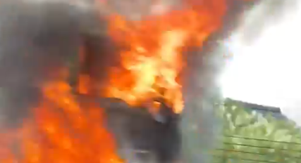 SNS上の投稿からは、バスが炎上している様子が確認できる。