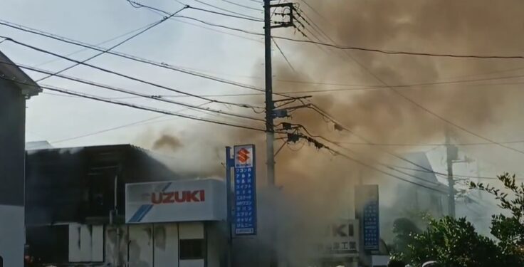 消防によると、7時55分現在、消火活動を行っているという。