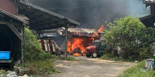 消防によると、小屋1棟が燃える火事で、11時35分現在、消火活動を行っているという。